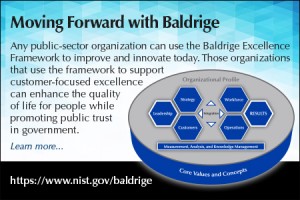 Why do government organizations choose to embark on a journey of improvement using the Baldrige framework? Whether one is a small government department or a large agency, an organization can use the framework to improve the effectiveness and efficiency of its operations as well as develop systematic and innovative processes to strengthen leadership, strategic planning and workforce engagement.